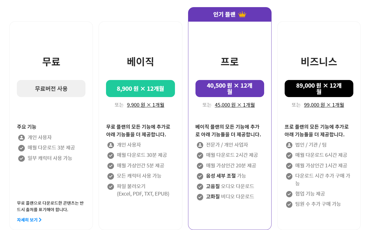 가격은 무료 사용으로는 테스트만 가능하다고 보시면 될듯 만든 영상을 3분 다운로드 가능 그리고 출처표기도 하셔야합니다 무료 확인후 필요에 따라 요금을 선택 결제 하시면 좋을듯합니다