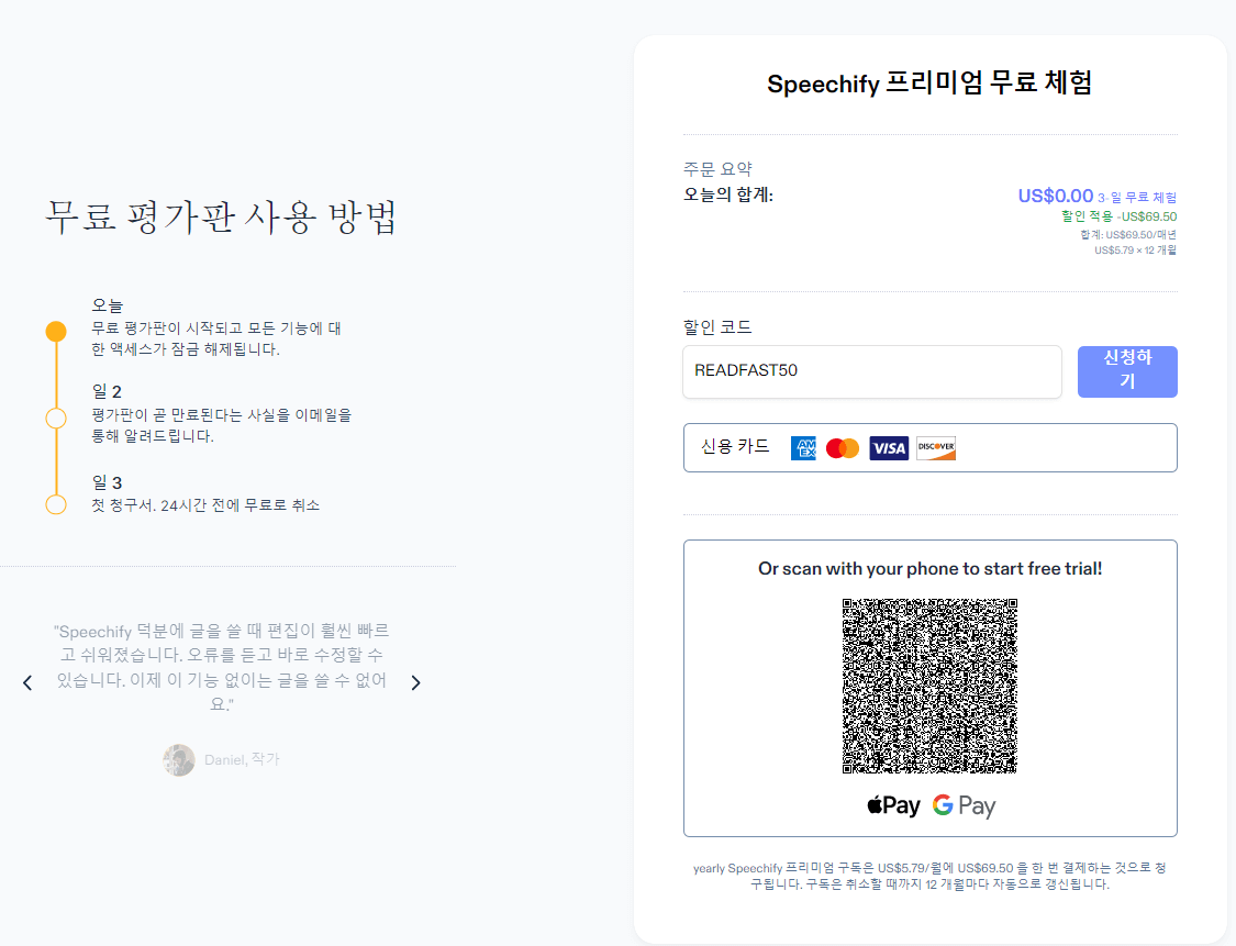할인된 금액 69.50달러로 1년을 사용 하시면 됩니다 할인코드 (READFAST50)