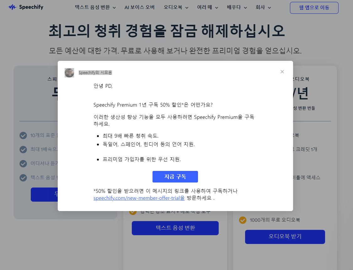 텍스트를 음성으로 변환 무료 Speechify(반값 구독)